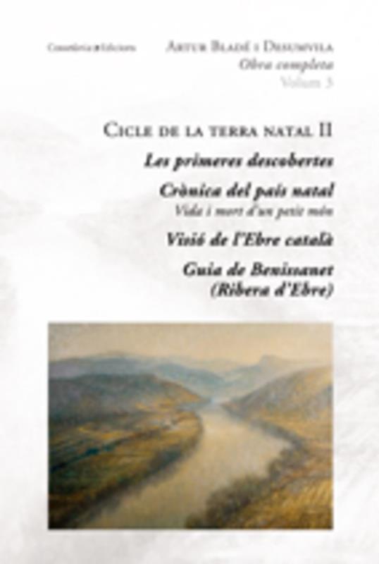 Volum 3: Cicle de la terra natal II. En aquest tercer volum de l'Obra completa d'Artur Bladé -el segon dels que integren el cicle que hem convingut a anomenar de la terra natal- publiquem quatre llibres que, amb gèneres diferents, conti nuen abordant com a temes principals la descripció del poble, el riu i la infantesa de l'autor. En Les primeres descobertes, es recullen els articles que, durant deu anys, de 1985 a 1995, Artur Bladé va escriure per als infants del seu poble. En Crònica del país natal. Vida i mort d'un petit món, publicat el 1958 i escrit des de Mèxic, és «producte de l'enyor», una suma de petits fl axos diferenciats temàticament, però alhora units per la mateixa música humana i de paisatge. Visió de l'Ebre català és el relat d'un viatge fluvial, el 1968, de Riba-roja al Delta, convertit en un reportatge d'unes quaranta pàgines. Guia de Benissanet, de 1982, és una breu monografi a històrica, destinada a sintetitzar les dades essencials del seu poble natal (situació geogràfica, evolució demogràfica, climatologia, gastronomia, economia, història, cultura i patrimoni natural, artístic o arquitectònic).
