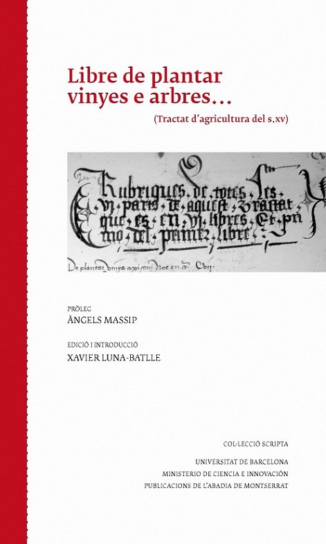 El Libre de plantar vinyes e arbres...és un manuscrit del final del segle XV que un escrivà anònim del Maestrat va copiar d?una obra prèvia que desconeixem. Un tractat d?agricultura de llengua concisa, pràctica i directa que conté molts trets dialectals de les terres de l?Ebre i del nord valencià. É...