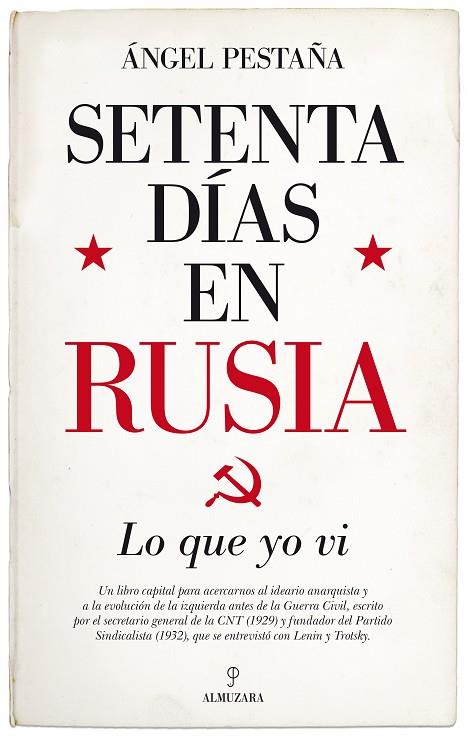 Aunque hoy sea una figura injustamente olvidada, Ángel Pestaña (San Tomás de las Ollas, 1886-Barcelona, 1937) fue secretario general de la CNT en repetidas ocasiones, fundador del Partido Sindicalista y Diputado en Cortes Generales por la provincia de Cádiz. Setenta días en Rusia. Lo que yo vi, es un texto publicado originalmente en 1924, en el que se narra el viaje emprendido a Moscú, en 1920, para presentar la adhesión de la CNT a la Internacional Comunista, donde conocería a Lenin, Trotsky o Grigory Zinoviev. Pestaña, no obstante, encarnaba esa raza de desengañados del bolchevismo como el húngaro Arthur Koestler, de igual modo que manifestaba una repulsa a la tiranía leninista que se empareja con la de Rosa Luxemburgo, quien también quiso hermanar humanidad y revolución.