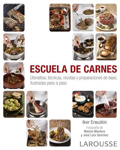 La colección Escuela de ... se ha convertido en un referente de la bibliografía gastronómica, tanto en las casas como en los restaurantes o las escuelas de hostelería. La carne es una de las bases de la cocina, muy presente en la gastronomía mediterránea, que abarca animales de crianza y salvajes de los que se extraen las piezas a cocinar: ternera, cerdo, oveja, cabra, conejo, caza menor, caza mayor e incluso carnes exóticas. Este libro del chef Iker Erauzkin incluye las principales técnicas y preparaciones de base para su elaboración, con fotografías y textos paso a paso, y sigue con un conjunto de recetas, desde las más tradicionales a otras innovadoras y gustosas, clasificadas por los diferentes grupos de animales, con foto final de plato acabado. Gracias a Escuela de carnes, ¿quién no se atreve a preparar un tataki de ternera con soja y tomate confitado, unas costillas de cerdo con auténtico sabor BBC, una pierna de cabrito rellena e incluso una cazuela de ancas de rana al ajillo?