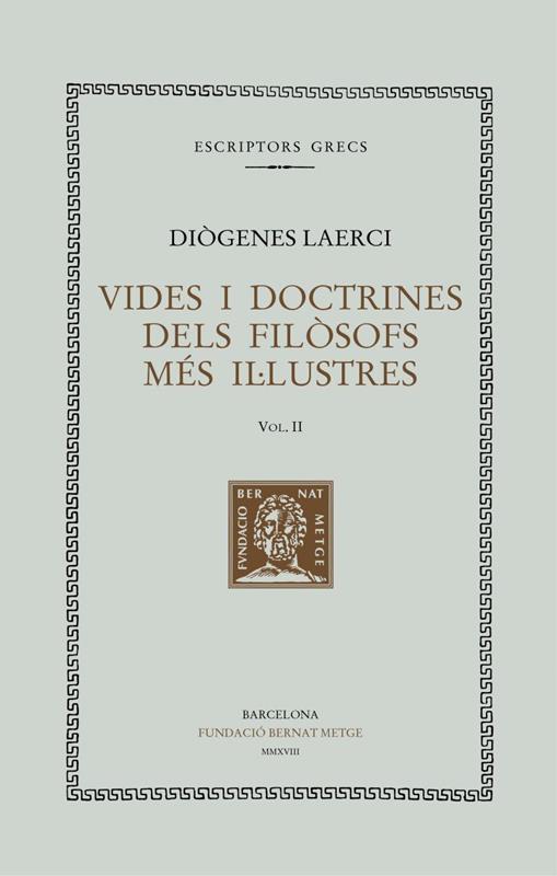 Per a qui vulgui saber què es deia a l’Antiguitat sobre les biografies de Tales, de Parmènides i de Plató, entre molts altres pensadors, les Vides i doctrines dels filòsofs més il·lustres són, sens dubte, l’obra de referència. El text de Diògenes Laerci, estructurat en deu llibres, es complau a explicar anècdotes, a recollir dades que si no fos per ell s’haurien perdut, a establir relacions entre els diversos filòsofs. Per la seva extensió, el seu grau de detall i la diversitat de la informació que transmet, és una obra singular en el panorama de la literatura antiga conservada. Aquest segon volum, amb què es continua l’edició catalana completa, bilingüe i anotada d’aquesta vasta obra, conté el segon i tercer llibre de l’obra laerciana, que presenten alguns dels pensadors grecs més significatius i influents del pensament antic: des dels naturalistes jònics, com Anaximandre o Anaxàgoras, fins a Plató, el fundador de l’Acadèmia, passant per Sòcrates i els seus deixebles. Com en el primer volum, la traducció de Sergi Grau al català és la primera que té en compte la gran edició recent del filòleg Tiziano Dorandi, que presenta notables millores respecte de les edicions anteriors. Per totes aquestes raons, el volum és una eina indispensable per a l’historiador de la filosofia, a més de constituir una font de delectança per a qualsevol lector interessat en les vides dels pensadors grecs.