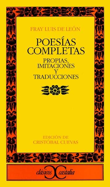 La edición que presentamos publica el corpus luisiano en su integridad -poesías ?propias? castellanas y neolatinas así como las traducciones e imitaciones del hebreo, griego, latín y romance (italiano y catalán)- . Sólo prescinde de las atribuciones no suficientemente justificadas, sean cuales fueren su antigüedad o sus valedores , y acepta la tripartición estructural. Así aparece: Libro primero: Obras propias; libro segundo: Traducciones e imitaciones de autores profanos; Libro tercero: Traducciones de autores sagrados; Apéndice: Poesía neolatina.Cuevas en su introducción analiza los distintos métodos de datación que los más renombrados especialistas en la poesía de Fray Luis han elaborado y estudia con gran detenimiento el poemario ?propio? del agustino. Para ello nos entrega al comienzo de cada poema unas breves líneas introductorias que establecen una comunicación intertextual que los explica mutuamente- ; las traducciones en verso de textos bíblicos, clásicos o romances prestigiosos -obra que le importaba a Fray Luis más que sus propias composiciones- ; los manuscritos y los impresos.En cuanto a las notas a pie de página, Cuevas sigue el método humanístico de aclarar pasajes difíciles, alusiones, precisar fuentes y establecer intertextualidades, sin descuidar los aspectos estructurales y lingüísticos. Para las aclaraciones léxicas recurre a fuentes antiguas, cuida minuciosamente la filiación textual y uniforma y moderniza, en lo posible, la ortografía.