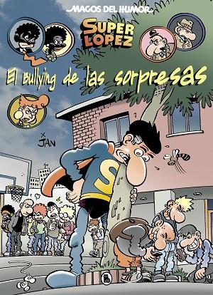 El acoso en las aulas, conocido como bullying es un problema muy serio, que preocupa tanto a educadores como a padres de alumnos. En El bullying de las sorpresas, Superlópez intentará mediar en un caso de bullying en un instituto, para intentar solucionarlo.