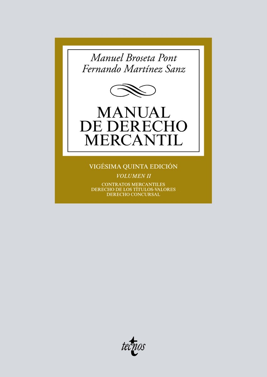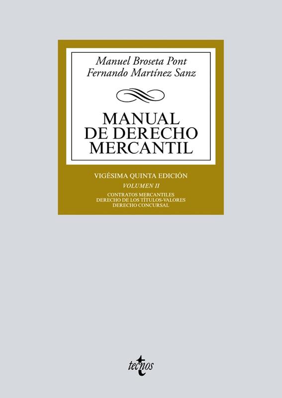 Al igual que el primero, también este segundo volumen de la vigésima quinta edición del Manual de Derecho Mercantil se ocupa de tres aspectos que resultan fundamentales para el estudio de la disciplina. El primero de ellos lo conforma la contratación mercantil y los mercados financieros. A las importantes reformas reflejadas ya en ediciones anteriores ha de añadirse ahora la aprobación del Real Decreto-ley 21/2017, de 29 de diciembre, que incorpora, al menos parcialmente y de forma provisional, en tanto no se promulgue la proyectada Ley del Mercado de Valores y de los Instrumentos Financieros, la Directiva 2014/65/UE (MiFID2) al ordenamiento español. El segundo de los bloques de materias lo constituye el derecho de los títulos-valores. Pese a la progresiva reducción que se aprecia en la práctica en el uso de estos instrumentos, se considera que su estudio continúa siendo fundamental para la adecuada comprensión de la disciplina mercantil. En fin, el volumen se cierra con los capítulos dedicados al Derecho concursal. Al igual que sucedía en la edición anterior, no hubo novedades legislativas que incorporar en esta materia, pero no por ello se ha renunciado a reseñar las decisiones más significativas del Tribunal Supremo sobre diferentes aspectos de la Ley Concursal. Con todo ello se aspira a ofrecer una visión sistemática y comprensible del Derecho mercantil actual, cada vez más complejo, pero sin perder de vista que, ante todo, se trata de un manual universitario, que ha de suministrar al alumno las bases para el estudio razonado de la disciplina, antes que un simple repertorio de datos o preceptos legales.