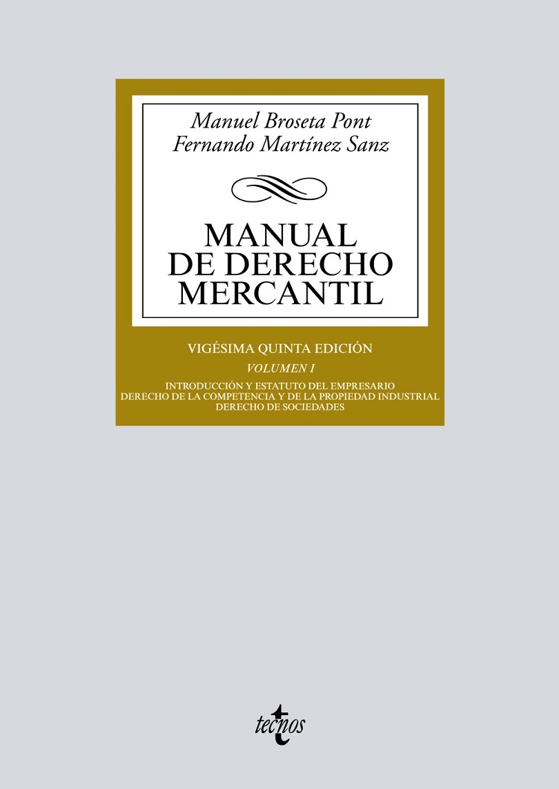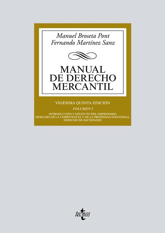 El volumen primero de esta vigésima quinta edición del Manual de Derecho Mercantil se ocupa de tres aspectos clave de la disciplina: lo que puede resumirse bajo el «estatuto del empresario» (concepto de empresario, establecimiento mercantil, Registro Mercantil); Derecho de la competencia y de la propiedad industrial; y Derecho de sociedades, la parte sin duda más extensa de este volumen. Se ha tratado de reflejar en el texto las escasas novedades habidas durante los últimos meses. La mayoría de ellas no proviene del legislador, aunque sí se ha modificado, por ejemplo, el régimen legal aplicable al traslado del domicilio social dentro del territorio español, sino de los tribunales de justicia, que han debido ocuparse, entre otros aspectos, de la remuneración del consejero delegado de una sociedad de capital, o de la licitud de la venta a pérdida en el marco de la Ley de Ordenación del Comercio Minorista.