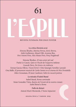 Editorial: Elogi de la política Simona Škrabec, El meu amor pel sud Paola Lo Cascio, Què se n’ha fet de l’esquerra italiana Ganesh Devy, Fer front a la violencia Ferran Garcia-Oliver, Vicent Ferrer i Otto Quangel, homilies i postals Ona Ballo, El pensament musical de Carles Santos en el cinema de Pere Portabella Allen Grossman, El meu Caedmon: Sobre la vocació poética