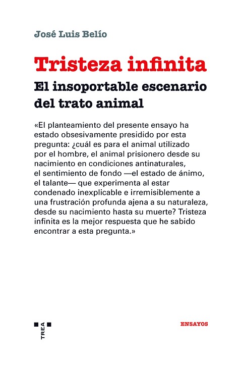 En su ensayo El error de Descartes, Antonio Damasio explica (2006) cómo las emociones y sentimientos son un componente integral de la maquinaria de la razón. Explica también el concepto de «sentimientos de fondo», aquellos sentimientos que se originan en estados corporales «de fondo» y no en estados emocionales. El sentimiento de fondo es la imagen que se crea en nuestro cerebro del paisaje de nuestro cuerpo cuando no está estremecido por una emoción inmediata; podría asimilarse al concepto de «estado de ánimo» o de «talante» —bueno, malo o indiferente—. El planteamiento del presente ensayo ha estado obsesivamente presidido por esta pregunta: ¿cuál es para el animal utilizado por el hombre, el animal prisionero desde su nacimiento en condiciones antinaturales, el sentimiento de fondo —el estado de ánimo, el talante— que experimenta al estar condenado inexplicable e irremisiblemente a una frustración profunda ajena a su naturaleza, desde su nacimiento hasta su muerte? Tristeza infinita es la mejor respuesta que el autor ha sabido encontrar a esta pregunta. Sin embargo, si resulta obvio que la relación del hombre con el resto de los animales debe desterrar prácticas dañinas, la reflexión sobre el mundo animal nos permite llegar más lejos: nos lleva a la reflexión sobre la salud del ser humano y sobre el sostenimiento del planeta. El movimiento animalista lo resume con sencillez: «Dejar de tener una dieta basada en el consumo cárnico es bueno para nuestra salud y es bueno para nuestro planeta».Todavía más lejos puede llegar la reflexión sobre el mundo animal: a vislumbrar unas nuevas relaciones económicas globales, adecuadas a las exigencias y las posibilidades del siglo xxi, una nueva economía capaz de combinar la reducción de las desigualdades con la sostenibilidad medioambiental.