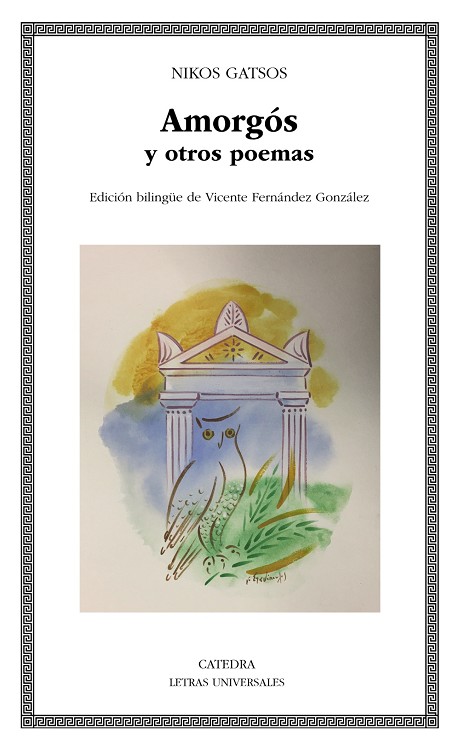 Nikos Gatsos (1911-1992) constituye un caso único en las letras griegas contemporáneas. Tras la publicación de "Amorgós" en 1943, en plena ocupación nazi de Grecia, optó por el silencio y apenas volvió a publicar poemas. Emprendió, sin embargo, una brillante carrera de letrista y, en colaboración con Theodorakis, Hadjidakis y otros compositores, contribuyó decisivamente a la renovación de la canción griega. "Amorgós", hito del movimiento surrealista griego, en la tradición, por otra parte, del poema largo del siglo XX, encierra todo el legado de la literatura griega moderna, de la que es una suerte de compendio. Por su papel con respecto a la relación entre tradición y vanguardia, y por su significación política, se puede sugerir un paralelismo entre "Amorgós" y el "Guernica" de Picasso, que también es un compendio de la tradición plástica española.