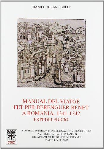 En esta obra se presenta la edición y estudio del manual de un viaje a Romanía de un mercader barcelonés, Berenguer Benet, hecho entre 1341 y 1342. Se entiende aquí por Romanía el área geográfica comprendida entre Creta, al sur, Constantinopla, al norte, Corfú, al oeste, y la costa de Turquía, al este. Estos territorios fueron considerados por los catalanes de la Edad Media como una unidad geográfica, que se correspondía, aproximadamente con los límites del Imperio Bizantino antes de la Cuarta Cruzada (1204). El objetivo del autor es estudiar y analizar las relaciones políticas y comerciales catalano-aragonesas con la Romanía y la presencia catalana en la región como un marco explicativo del origen y desarrollo de los consulados catalanes allí presentes entre los siglos XIII y XVI.