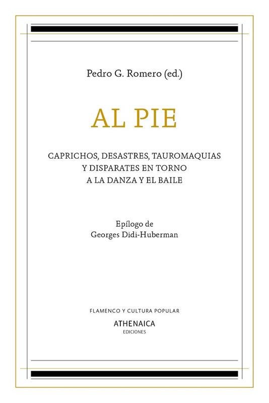 Se reúnen de nuevo, con algunas novedades añadidas, las escrituras libérrimas que hace ya más de veinte años Pedro G. Romero encargó a una serie de artistas y teóricos como textos de apoyo a los Talleres que el propio autor iba a impartir en el Centro Andaluz de Danza. De aquella experiencia surgieron posteriores colaboraciones y el proyecto fue el origen de una revolución en la danza y el baile flamenco —entendidos aquella como expresión reglada y culta y este como la libre expresión popular del cuerpo en movimiento— que hoy contemplamos con regocijo en varias compañías, pero cuyo origen puede situarse en el estreno de Los zapatos rojos de Israel Galván. Desde muy diversos puntos de vista, en una especie de polifonía que engloba diferentes mundos, el baile y la danza son analizados para ir más allá de las líneas estrictas en las que por entonces se movían. El poeta y filólogo Agustín García Calvo y el filósofo Giorgio Agamben presentan textos fundantes de una manera de entender las artes escénicas. Trabajos más intuitivos como los de Isabel Escudero, Esteban Pujals o David Pérez siguen la estela de pensar la danza y, en consecuencia, no explicarla, más bien entenderla como una forma distinta de pensamiento. En ese pensamiento lírico y sensual, pero sobre todo flamenco se mueven también las contribuciones de Ortiz Nuevo. Desde Nueva York, Kirby Gookin y Berta Sichel enfrentan, como dos adelantados a su tiempo, el movimiento del cuerpo con la técnica. Los textos de Estrella de Diego, Patricia Molins y Delfín Colomé conciben la danza como un arte especialmente femenino y feminista, mientras Julián Ruesga Bono lo hace desde sus intereses artísticos y textiles, y Antonio Álamo y Pepa Gamboa desarrollan sendas puestas en escena. A este festín se suman los textos del propio Pedro G. Romero, donde se apuntan las preguntas fundamentales de ese enfrentamiento danza/baile, y un epílogo de Georges Didi-Huberman que vale como broche, culminación y amalgama del resto de los contenidos del libro.