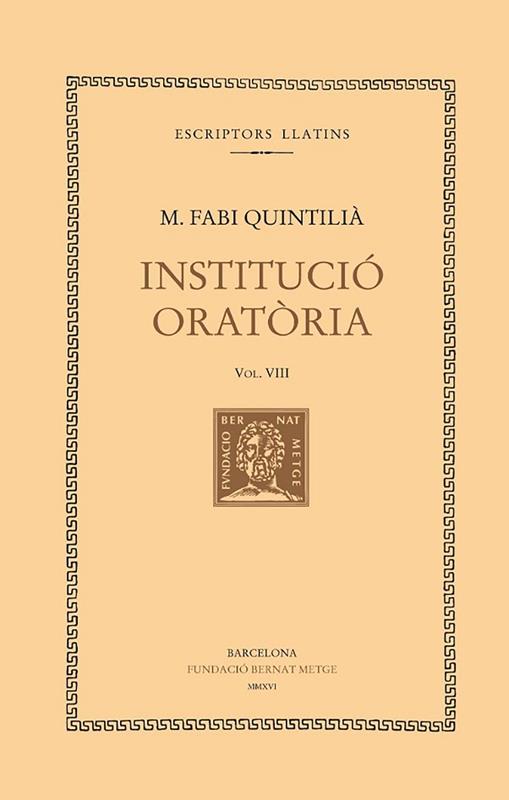 Aquest volum conté el llibre IX de la Institució oratòria, que continua tractant de l’elocutio, és a dir de la tria i la col·locació dels mots amb què s’expressen els pensaments. En concret, Quintilià se centra ara en les figures retòriques, tant les de pensament com les de dicció, i també discuteix...