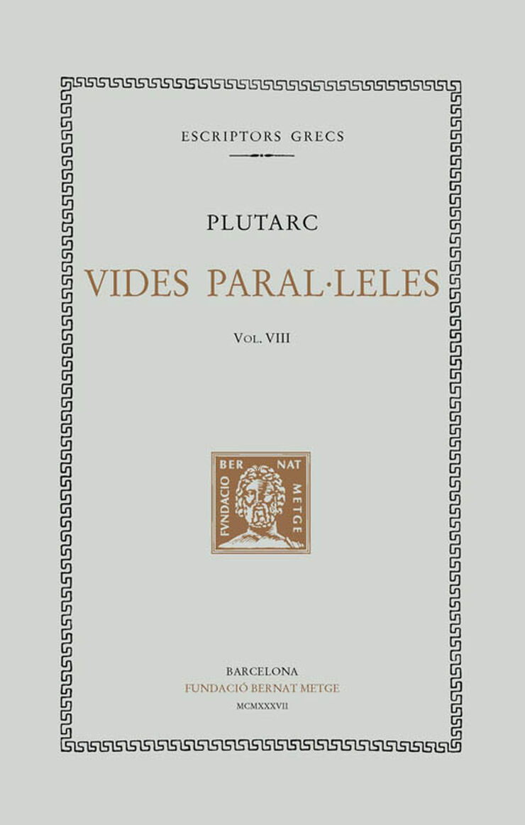 El vuitè volum de les Vides paral·leles de Plutarc conté la tercera part del volum II d’aquesta obra (Filopemen i Titus Flaminí; Pelòpidas i Marcel). 36€