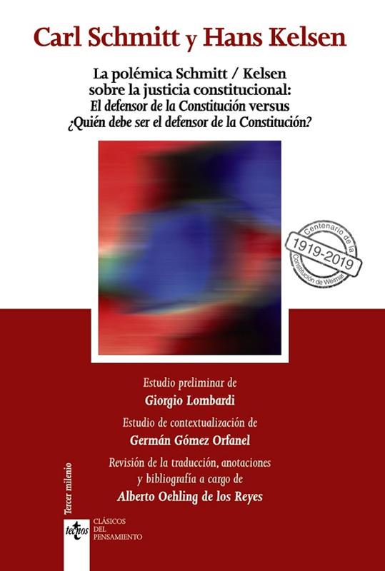 La polémica que en 1931 enfrentó a Carl Schmitt y Hans Kelsen acerca del defensor de la Constitución ("Der Hüter der Verfassung"), es uno de los momentos claves del Estado democrático en que afloran toda una serie de intuiciones, planteamientos y críticas que desbordan el estrecho marco de la justicia constitucional. Frente a la tesis de Kelsen recogida en la Constitución Austriaca de 1920, que atribuye a un órgano técnico especializado el monopolio del control de constitucionalidad de las leyes, se levanta la propuesta de Schmitt de hacer del "Reichpräsident" en su condición de poder elegido directamente por el pueblo, el custodio de la esencia de la Constitución cuando resulte amenazada. Dos posturas antagónicas que responden a dos ideas diferentes de Estado, de Constitución, y de Derecho que separan a los dos mayores juristas del siglo XX. La Constitución concebida como norma lógica desprovista de contenidos ajenos a lo jurídico, frente a la Constitución entendida como suma de decisiones políticas fundamentales que expresan la voluntad colectiva de un pueblo, y susceptible de encerrar contradicciones. Giorgio Lombardi desentraña en el estudio que precede a los textos, los argumentos de la polémica procurando situarlos en su contexto lógico. No es lo mismo la defensa existencial de la Constitución, que la preocupación por garantizar su aplicación. En un caso se busca la continuidad de la estructura política, en otro depurar y dar coherencia al orden normativo.