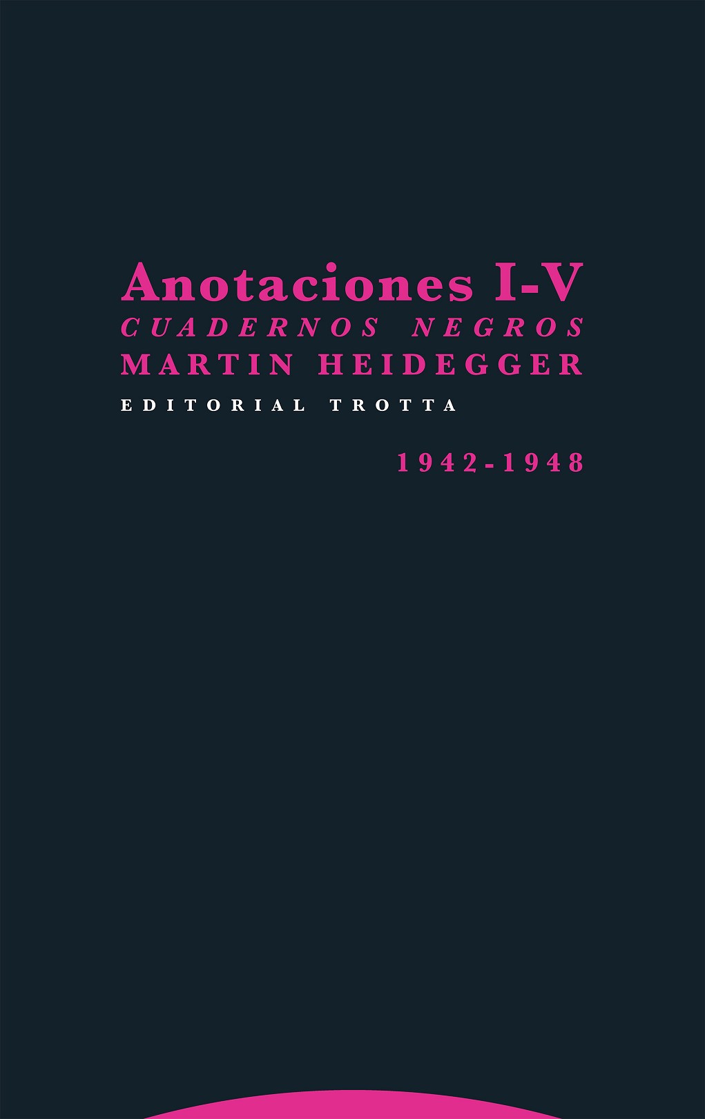 Los «Cuadernos negros» representan una forma que, en su estilo, posiblemente resulte singular no solo en Martin Heidegger, sino en general en toda la filosofía del siglo XX. El género con el que mejor se los podría comparar sería el «diario de pensamientos» o el «diario filosófico». Pero mientras que esta designación casi siempre relega los escritos que quedan comprendidos bajo ella al margen de unas obras completas, el significado de los «Cuadernos negros» habrá que considerarlo sin embargo aún en el contexto del «pensar inicial» de Heidegger. Esta cuarta entrega de los «Cuadernos negros» contiene las «Anotaciones I-V», que arrancan cuando se inicia la derrota alemana en la guerra mundial y prosiguen en la inmediata posguerra. Al comienzo de las «Anotaciones IV» Heidegger cita la siguiente frase de Leibniz: «Quien solo me conoce por mis libros no me conoce». Esta frase da una indicación sobre el significado de los Cuadernos negros en su conjunto. Ellos constituyen unos singulares manuscritos escritos al margen de la esfera pública. Incluso de forma distinta que los tratados inéditos, como por ejemplo los «Aportes a la filosofía (Acerca del evento)», le ofrecen a Heidegger la posibilidad de escribir sin trabas su pensar sin parar mientes en formalismos.