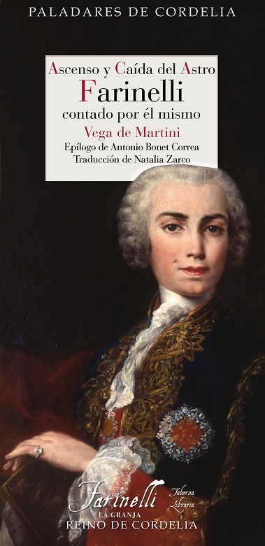 Considerado uno de los castrati más famosos del siglo XVIII, Farinelli cuenta en primera persona su vida, de la mano de la historiadora y escritora Vega de Martini (1949), a través de un jugoso texto que revela las aventuras del cantante napolitano. Sus estancias en Roma, Viena, Londres, Madrid, Bolonia… La gran amistad con Metastasio, el amor por Teresa Castellini, el estigma de la castración, los desvelos por las óperas, las afinidades y recelos de los artistas cortesanos, el desapego y la familiaridad trazan un panorama en el que resalta la enorme profesionalidad del astro italiano. El ensayo lo completa un epílogo de Bonet Correa, que abrocha con su sabiduría el retrato de Farinelli.