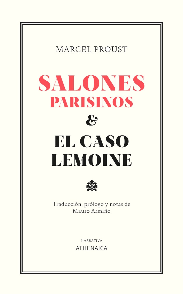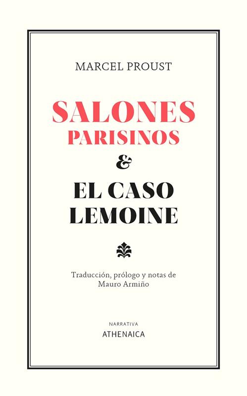 Marcel Proust escribe con una diferencia de cinco años, de tres si nos atenemos a la fecha del último "salón" publicado (1905) y el primer «pastiche» (1908), estos dos conjuntos de textos presididos por una idea absolutamente distinta. Si los Salones pertenecen al mundo en que se ha movido la primera juventud del autor y en el que ha nacido su primer libro, Los placeres y los días (1896), en El caso Lemoine se trata de una gimnasia del oficio de la escritura, de un ejercicio de análisis de estilos ajenos a través de un caso de crónica de sucesos: la estafa de un tal Lemoine a la más alta compañía de diamantes del mundo. En los Salones encontramos un Proust alabancero, que reseña, bajo pseudónimo y en Le Figaro, actos sociales de ese mundo aristocrático con el que más tarde saldaría cuentas críticas en distintos volúmenes de A la busca del tiempo perdido, su obra capital (en 'La parte de Guermantes' y 'Sodoma y Gomorra' sobre todo, y tan acerbas como en el viscontiniano "Baile de las Cabezas" de 'El tiempo recobrado'). En El caso Lemoine el joven deslumbrado por ese mundo trasnochado se vuelve hacia lo que quiere que sea su oficio, y utiliza el suceso como tema de ejercicio literario y manera de encauzar una innata disposición a la imitación de voces y gestos: narrar el caso a partir del espíritu, las formas e incluso las expresiones puntuales de determinados escritores, admirados unos, como Flaubert o Saint-Simon, otros no tanto, y en algún caso criticados, como ocurre con el famoso Sainte-Beuve, cuyos planteamientos negará o discutirá durante toda su vida. Estas páginas singulares presentan a un Proust distinto y a la vez reconocible, delicado o irónico, pero siempre seductor, acogido a la lucidez y el proverbial virtuosismo de su prosa.