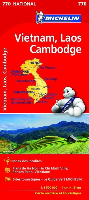 Los mapas de carreteras de la colección National disfrutan de una escala detallada que se ha adaptado a cada país o región, ofreciendo una cartografía fiable, a la vez que clara, para facilitar su viaje y orientación. Gracias tanto a su actualización anual como a la gran diversidad de informaciones recogidas en sus signos convencionales, mediante pictogramas de fácil comprensión, los mapas National son una herramienta imprescindible, no solo para viajar con total seguridad, sino también, gracias a las informaciones turísticas que incorpora, para descubrir nuevos países o regiones. El Mapa National Vietnam, Laos, Cambodge, editado a escala 1/1 500 000, guarda además otros interesantes contenidos, tales como un índice de localidades y curiosidades turísticas. Incluye signos convencionales inglés, francés.
