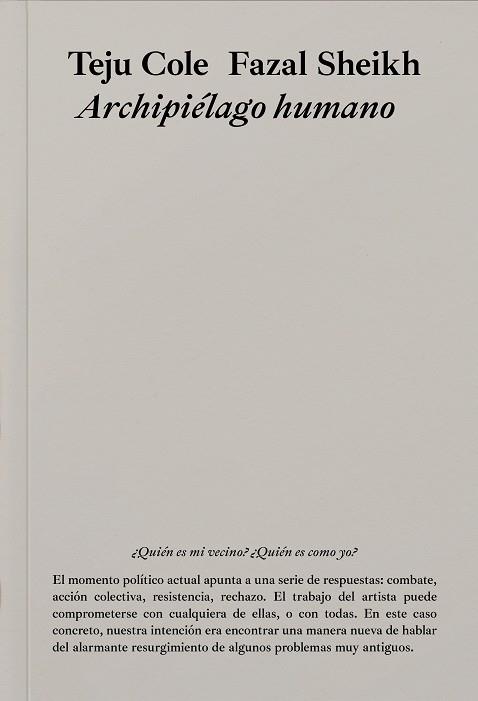 De la alianza entre los artistas afroamericanos Fazal Sheikh y Teju Cole surge esta reflexión sobre las cuestiones trascendentales que en estos tiempos convulsos convocan a la humanidad: los crímenes de las políticas migratorias, la xenofobia y el individualismo, pero también la hospitalidad, el espejo amoroso que es el rostro del otro y la emoción ante la posibilidad de formar parte de una comunidad de semejantes. Fue en 2018 cuando los autores crearon este libro con el fin de encontrar una nueva forma de hablar de la reaparición de problemas muy antiguos. Mediante la mezcla de los textos de Teju Cole y las fotografías tomadas por Fazal Sheikh durante más de treinta años, ambos autores establecen un diálogo entre sí y entre la historia, con una variedad de fuentes que van desde Homero y Shakespeare hasta Martin Luther King Jr., Toni Morrison y la teoría postcolonial. La actualidad de las guerras y los conflictos de hoy hace que este Archipiélago humano sea más urgente que nunca.