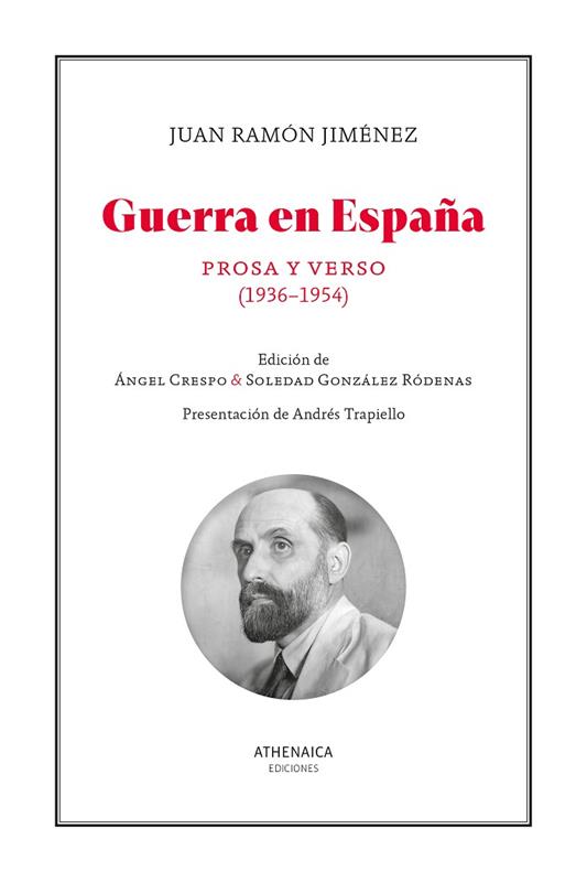La redacción de Guerra en España, el más anómalo de los proyectos editoriales de Juan Ramón Jiménez, se inició en paralelo a la contienda que le dio título, cuando ni el poeta ni su mujer, Zenobia Camprubí, vislumbraban que tras su salida de Madrid en 1936 nunca regresarían a su país en vida. Consciente de las críticas que su actitud política y la naturaleza unilateralmente lírica de su poesía habían suscitado, y dolido por las calumnias que sobre su persona se difundieron a ambos lados del Atlántico, decidió recopilar en un volumen misceláneo un conjunto de materiales diversos —propios y ajenos— en los que quiso aclarar los puntos más conflictivos y polémicos al respecto. Hasta principios de los años cincuenta reunirá bajo este título: diarios, aforismos, poemas, traducciones, notas autobiográficas, artículos, conferencias, semblanzas, cartas, entrevistas, fotografías, manifiestos y críticas cuyo único denominador común es su estricta vinculación con asuntos relacionados con la guerra civil, el exilio y las consecuencias que tuvieron tanto en su vida como en su obra. Guerra en España, por tanto, supone una revisión de su biografía atendiendo especialmente a su actitud ideológica, a sus actividades de carácter social o político y a su expresión de hombre libre sin ataduras, ante el que fuera el acontecimiento más doloroso y trascendental en nuestra historia reciente y en el itinerario de uno de los poetas más influyentes de su tiempo. Partiendo de la estructura básica que Ángel Crespo estableció en 1985 para la primera edición de la obra —que su autor nunca consiguió publicar—, Soledad González Ródenas revisa su propia edición de 2009 y completa sus contenidos a la luz de las últimas investigaciones en los archivos del poeta conservados en Puerto Rico. Asimismo, los contextualiza acompañándolos de un pormenorizado prólogo y numerosas notas. Se añaden a esta edición diecinueve nuevos documentos, once de ellos inéditos.