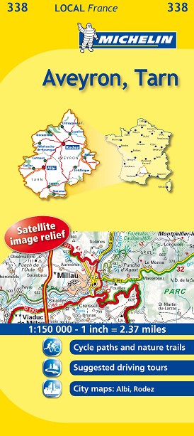 La edición actualizada del mapa Local Aveyron, Tarn, editado a escala 1/150 000, incorpora la señalización de pistas para ciclistas, vías verdes, sugerencia de itinerarios, así como los planos de las ciudades de Albi y Rodez.