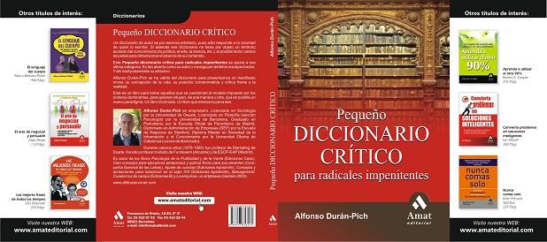 Un diccionario de autor es por esencia arbitrario, pues solo responde a la voluntad de quien lo escribe. Si además ese diccionario no tiene por objeto un territorio acotado del conocimiento(la política, el arte, la ciencia, etc.), el posible lector carece de pistas para dimensionar el alcance de su contenido. Este Pequeño diccionario crítico para radicales impenitentes se ajusta a esa última categoría. Es tan abierto como su autor y navega por ámbitos insospechados. Y ahí está justamente su contenido.