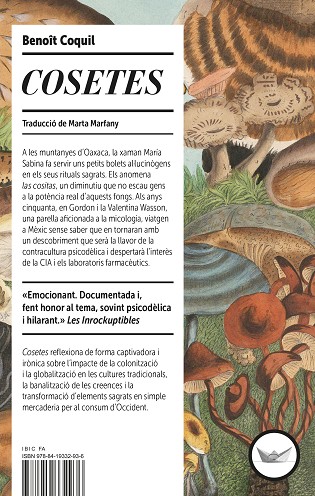 A les muntanyes d’Oaxaca la xaman María Sabina fa servir uns petits bolets al·lucinògens en els seus rituals sagrats. Els anomena las cositas, un diminutiu que no escau gens a la potència real d’aquests fongs. Als anys cinquanta en Gordon i la Valentina Wasson, una parella aficionada a la micologia, viatgen a Mèxic sense saber que en tornaran amb un descobriment que serà la llavor de la contracultura psicodèlica i despertarà l’interès de la CIA i els laboratoris farmacèutics. Cosetes reflexiona de forma irònica i captivadora sobre l’impacte de la colonització i la globalització en les cultures tradicionals, la banalització de les creences i la transformació d’elements sagrats en simple mercaderia per al consum d’Occident.