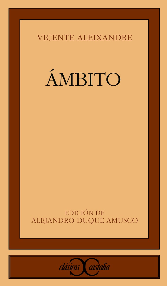 El libro inaugural de Vicente Aleixandre es todavía de oscilación estilística. Conviven en él tendencias muy dispares, propias de la dispersión estética que imperaba en España en los años veinte: neogongorismo, ultraísmo, poesía pura, surrealismo incipiente y controlado... Por encima de su difícil ubicación dentro de los esquemas generales del 27, destaca su sentido de anticipación de las tres etapas que integran esta poesía y de sus preocupaciones temáticas.La poesía irracionalista, de fusión cósmica y exaltación de lo elemental y lo erótico; la poesía de realidad, con el descubrimiento del tiempo y el emerger del hombre en su dimensión histórica y social; y la poesía de la última etapa, de vuelta a la conciencia del yo, se encuentran contenidas en esta obra.El deseo de identificación con el Todo, encarnado bajo la forma de la noche, pudiera dar sentido a una interpretación connotativa del título: Ámbito como ambición, como aspiración a poseer la inmensidad, en colosal abrazo.