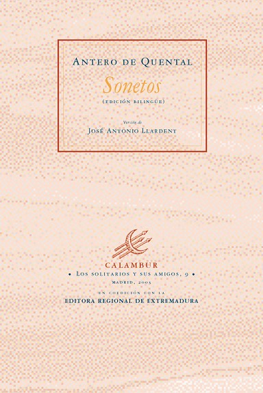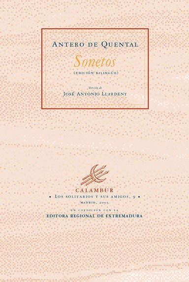 José Antonio Llardent (Oeiras [Portugal], 1925 - Madrid,1987), uno de los máximos lusistas españoles del siglo XX, recibió el Premio Nacional de Traducción en 1987 por la presente versión de los Sonetos de Antero de Quental. Felizmente lo ganó y lo supo antes de su muerte, como coronación simbólica de toda una vida de constante labor de mediación. José Saramago pudo escribir poco después: «Longe dos salões e dos gabinetes do Poder, trabalhando serenamente e tempestuosamente (só quem o não conheceu encontrará aquí uma contradição), José Antonio Llardent ajudou a levantar a ponte por onde agora passamos com una simplicidade que nos surpreende, abriu o terreiro do encontro onde nos descobrimos dialogantes, sensíveis e subitamente ansiosos, como se quiséssemos recuperar o tempo perdido e curar as susceptibilidades feridas». Con esta versión de los Sonetos, y como la crítica reconoció en su día, Llardent ponía corona de oro a un interés por la poesía de Antero que en España habían iniciado Clarín y Miguel de Unamuno. Hoy Calambur se honra en presentar de nuevo aquella ejemplar colección de 109 sonetos de Antero de Quental en su fiel y recreadora traducción, siempre desdoblados ante los ojos versión española y original portugués. Les precede una sobria, sólida y penetrante introducción, en la que José Antonio Llardent comprime su saber sobre el poeta y los avatares de su (y nuestra) relación con el país vecino.