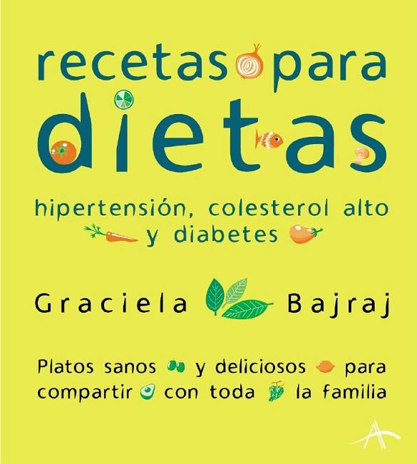 Para los miles de personas que padecen hipertensión, diabetes o tienen el colesterol alto, Recetas para dietas les ayudará a cuidar de su salud disfrutando de la comida. El libro está dividido en tres partes, cada una dedicada a uno de los trastornos. En ellas se encuentran recetas de primeros plato...