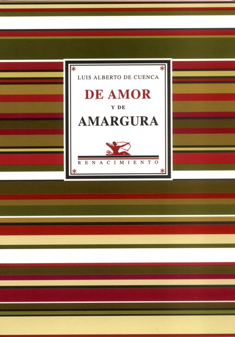 «De amor y de amargura recoge lo más granado de la poesía amorosa de uno de nuestros mejores poetas del amor, Luis Alberto de Cuenca. Esta selección abarca toda la obra poética del autor: desde Los retratos (1971), que es pieza de coleccionista, hasta el reciente Sin miedo ni esperanza (2002), pasando por La caja de plata (Renacimiento, 1985), que cambió el rumbo de la poesía española contemporánea. La colección cuenta con un aliciente muy especial: algunos poemas inéditos, con la tinta aún fresca. La herida del amor se ha manifestado en la poesía de Luis Alberto de Cuenca desde sus primeros poemas, y la vida le ha ido echando sal cada cierto tiempo para reavivarla. Esa sal se ha transformado en semilla de la que nacen los poemas de esta antología. Los lectores que coman de este fruto sabrán más del amor y de la vida.» Diego Valverde Villena