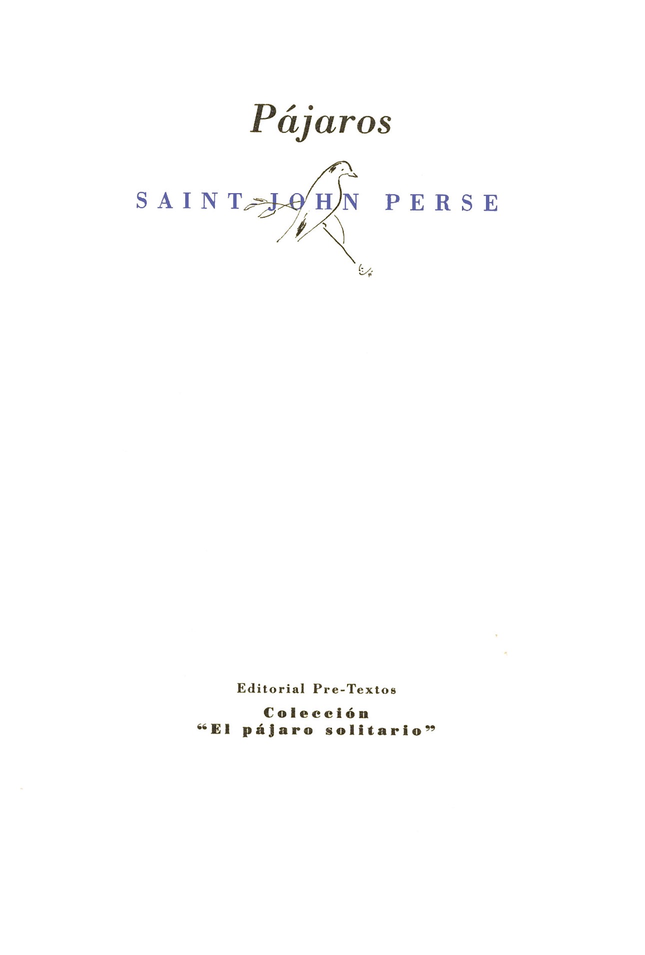 En 1910 un joven poeta, oculto bajo el sonoro pseudónimo de Saint-John Perse, recibía en su casa de las Antillas las primeras pruebas de un texto que, enviado como regalo personal a André Gide, éste se había apresurado a editar en "La Nouvelle Revue Française". El escrito, titulado Cohorte, festejaba en largas secuencias el vuelo y las especies de los pájaros de ultramar, los pájaros exóticos de las colonias. Pero había sido compuesto sólo en calidad de diversión, "por placer, por el gesto solemne y sin intención literaria".