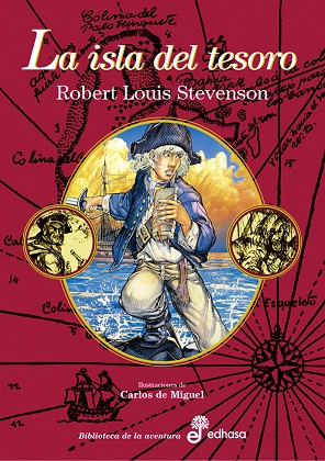 El argumento es conocido: A la muerte de un marino que se hospeda en la posada que regenta su madre, el joven Jim halla entre sus pertenencias un mapa para localizar un fabuloso tesoro. No tarda en encontrar quien flete un barco para buscarlo, pero entre la tripulación se enrolan también piratas como John Silver que también buscan el tesoro. A la novela en sí se añaden dos textos que Stevenson escribió acerca de la novela: "Los personajes del relato" y "Mi primer libro: La Isla del tesoro".